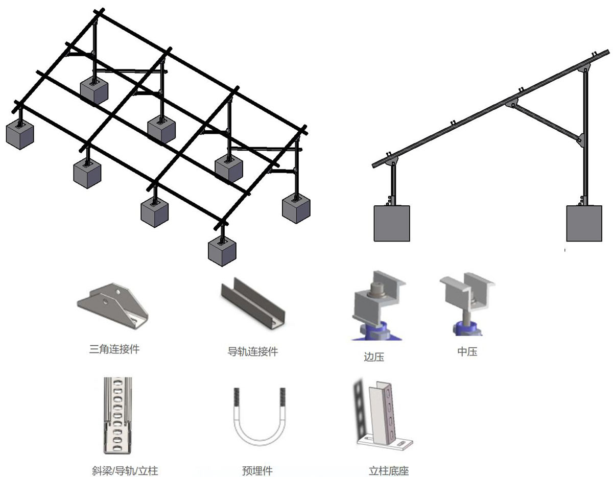 水泥平面和彩鋼瓦三角架光伏支架系統(tǒng)